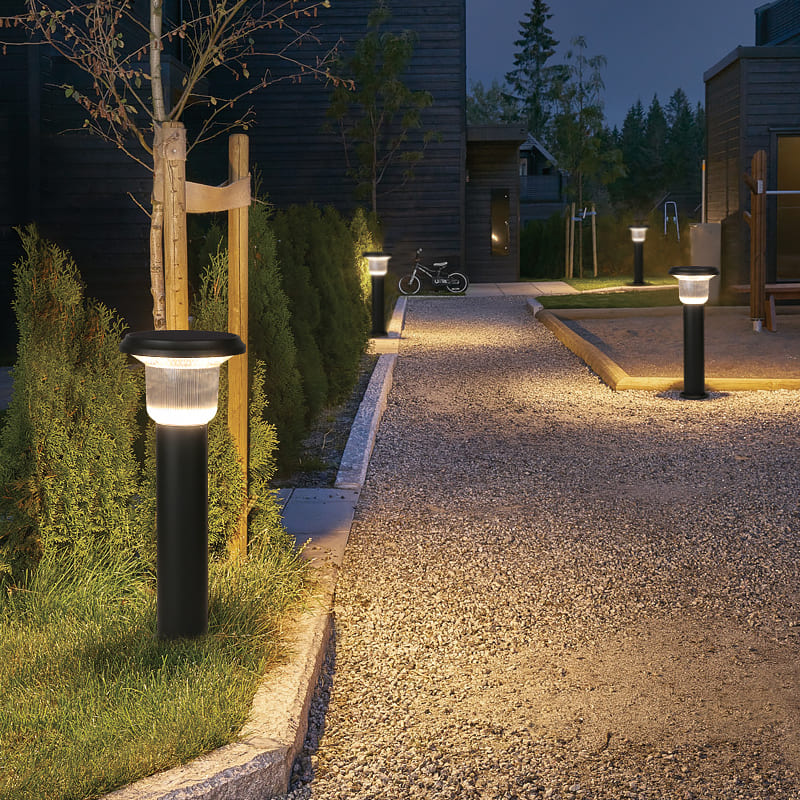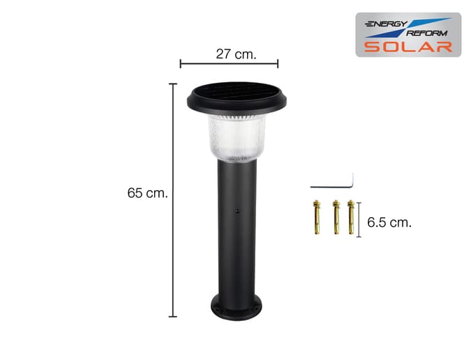 โคมไฟสวน / ทางเดิน ทรงหมวก สูง 65 ซม. ดีไซน์สวย เหมาะกับการติดตั้งบนพื้นปูนหรือพื้นหญ้า เพื่อเพิ่มความสว่างสำหรับทางเดิน โดยไม่ต้องเสียค่าไฟ หลอด LED มีแบตเตอรี่ในตัว ชาร์จไฟจากแสงอาทิตย์ ให้แสงสว่างได้นานถึง 12 ชม. (กรณีได้รับแสงแดดอย่างน้อย 5 ชม./วัน) ตัวโคมกันน้ำเกรด IP 65