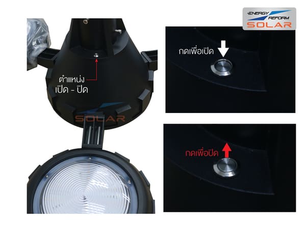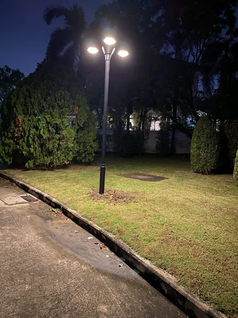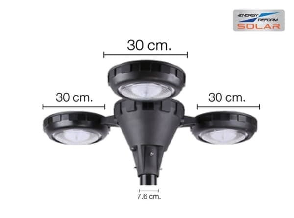 โคมไฟ รุ่น Threelight มาพร้อมกับเสาสูง 3 เมตร ดีไซน์สินค้ามีความทันสมัยสวยงาม เหมาะกับการติดตั้งเป็นไฟสวนหรือถนน ทางเดิน เพื่อส่องสว่าง โดยที่ไม่ต้องเสียค่าไฟ หลอด OSRAM LED ( Germany ) มีแบตเตอรี่ในตัว ชาร์จไฟจากแสงอาทิตย์ ให้แสงสว่างได้นานถึง 12 ชม. (กรณีได้รับแสงแดดอย่างน้อย 5 ชม./วัน) ตัวโคมกันน้ำเกรด IP 65
