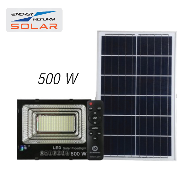 ขนาด 500 w หลอดไฟ LED คุณภาพสูง แสงขาว (Day Light) ชาร์จไฟจากแสงอาทิตย์ พร้อมรีโมท ให้แสงสว่างได้ถึง 10-12 ช.ม. (กรณีได้รับแสงแดดอย่างน้อย 5 ชม./วัน)