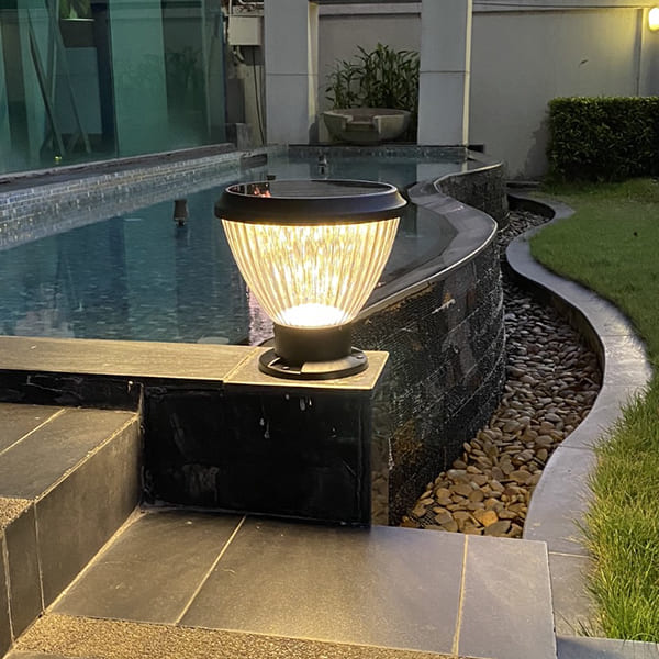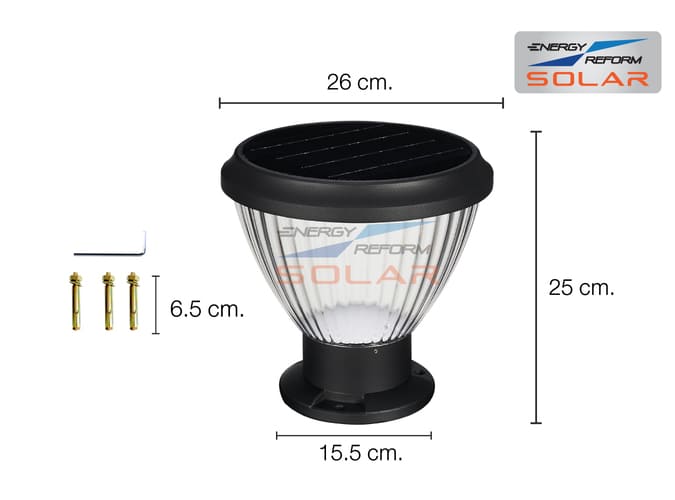 โคมไฟหัวเสา / รั้ว / ทางเดิน ทรงถ้วยลอน สูง 25 ซม. ดีไซน์สวย เหมาะกับการติดตั้งบนรั้วกำแพงหรือทางเดิน เพื่อเพิ่มความสว่าง โดยไม่ต้องเสียค่าไฟ หลอด LED มีแบตเตอรี่ในตัว ชาร์จไฟจากแสงอาทิตย์ ให้แสงสว่างได้นานถึง 12 ชม. (กรณีได้รับแสงแดดอย่างน้อย 5 ชม./วัน) ตัวโคมกันน้ำเกรด IP 65